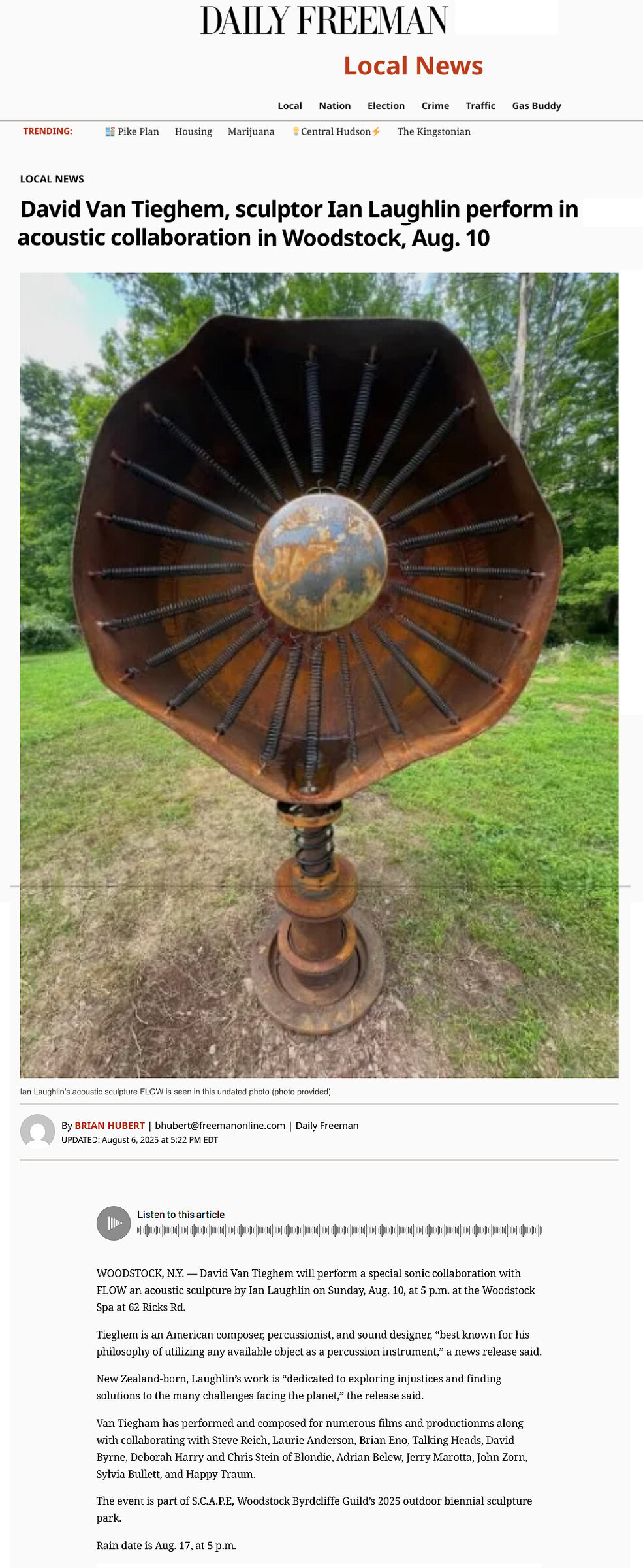 2025 Woodstock Spa/Woodstock Byrdcliffe Guild, Woodstock NY “S.C.A.P.E.” special event_FLOW performance by David Van Tieghem filmed